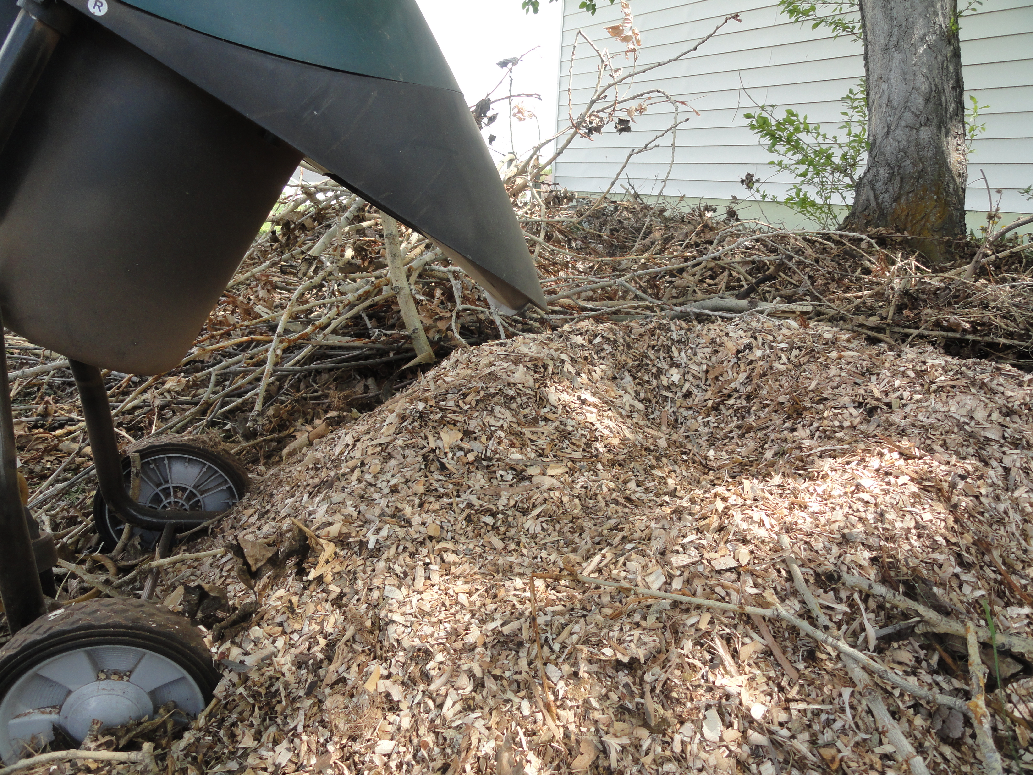 I’ve been chipping away like nobody’s business (and pushing the one inch limit a little with no complaints from the equipment) and have a very respectable pile of chips to show for it. Combined with all the lovely decayed leaves at the bottom of the pile, my flower beds are going to be so happy! (I recently learned that wood chips are not a great choice for mulching veggie beds though–they tie up too much nitrogen.)
